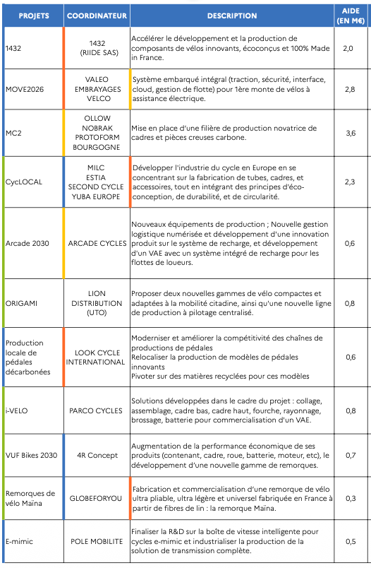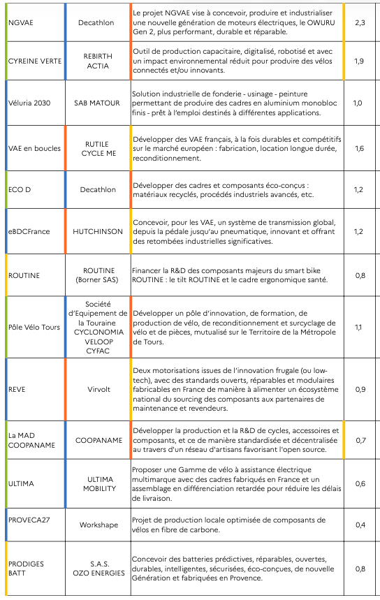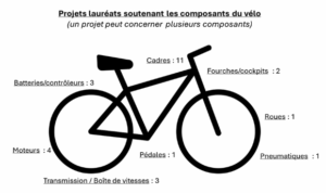 Nos premiers travaux côté filière sur ce sujet datent du printemps 2023 et c’est une belle satisfaction de découvrir les projets sélectionnés. Les lauréats portent des projets de ré-industrialisation concernant le développement de l’assemblage mais aussi les composants, en particulier le cadre et les éléments spécifiques au vélo à assistance électrique. Une part importante des innovations concerne les matériaux et les procédés de fabrication, traduisant une stratégie d’éco-conception alliant performance, compétitivité et durabilité.