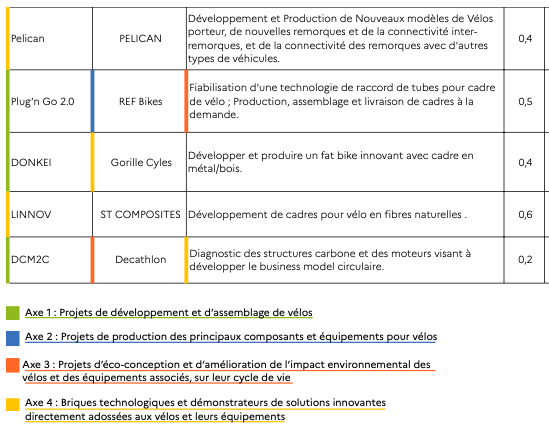 A ce jour la filière industrielle du vélo est très mécanique. Plusieurs projets portent sur l’automatisation, la digitalisation, la gestion des risques, l’expérimentation et la réduction des risques. Cet AAP permet d’ancrer de manière durable la modernisation de la filière.
