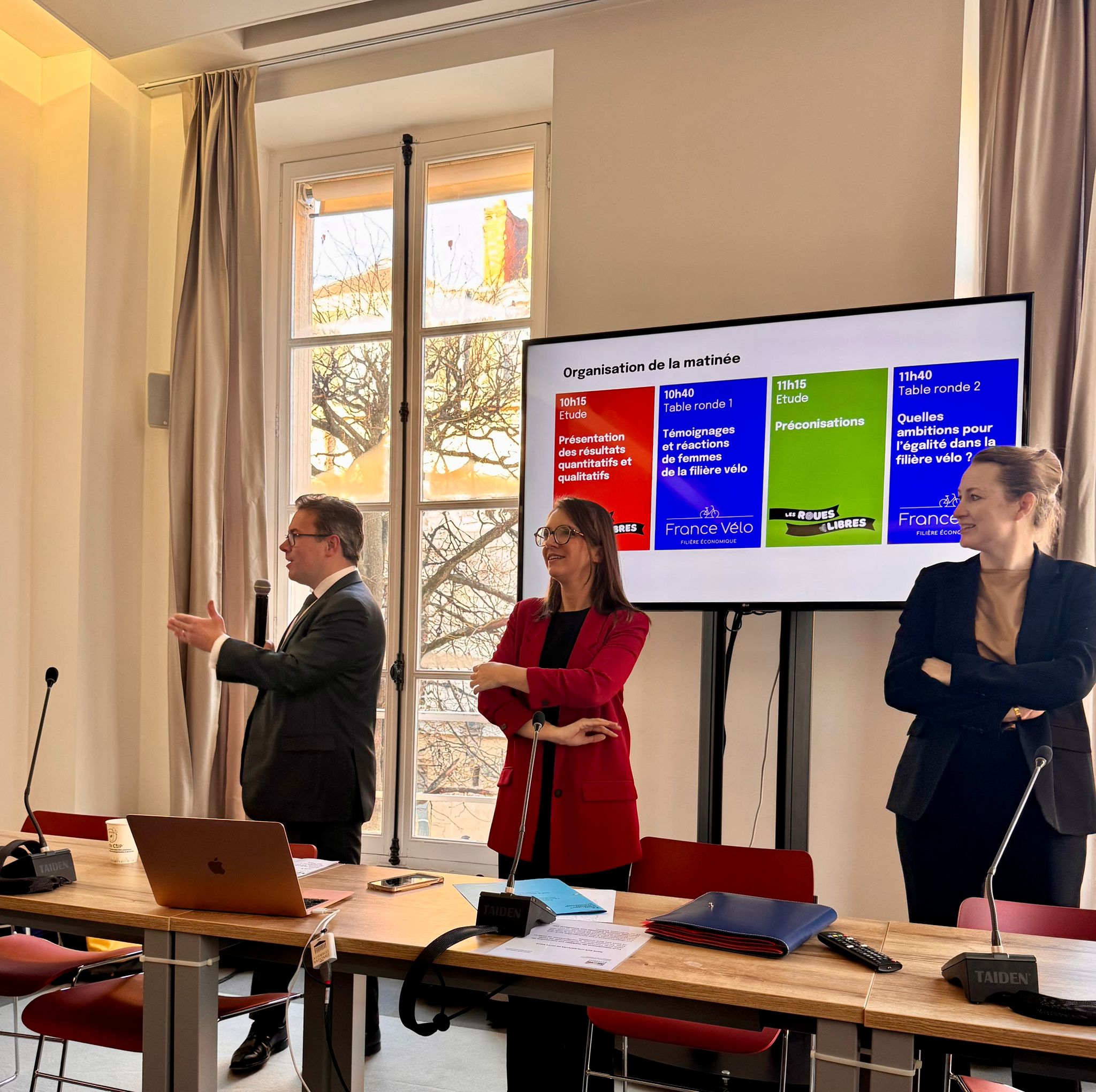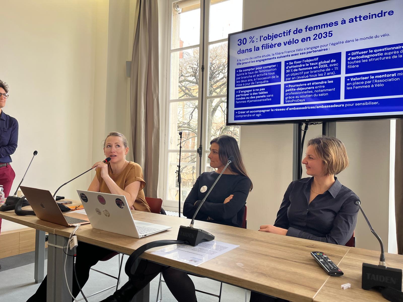 Ce lundi 15 décembre, la filière vélo a montré son souhait de devenir exemplaire sur le sujet de l’égalité, à l’occasion de la présentation à l’Assemblée nationale de l’étude sur la place des femmes dans le vélo, réalisée par l’Association Les Roues libres. Notre objectif est clair : nous visons 30% de femmes professionnelles dans la filière en 2035, contre les 18% aujourd’hui.
