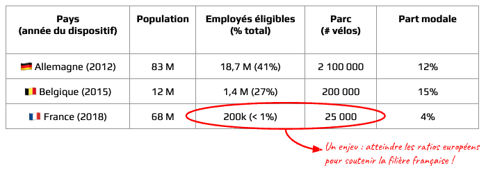L’Allemagne a mis en place son système de leasing vélo en 2012 et compte aujourd’hui plus de 2,1 millions de vélos en leasing, avec 41% des employés éligibles. La Belgique a commencé en 2015 et a déjà un parc de 200 000 vélos en leasing, alors que la France n’en compte début 2026 qu’environ 25000.